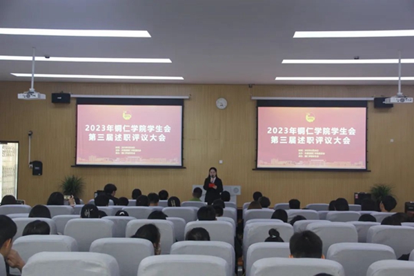会上,各学院代表依次上台进行述职。他们围绕本学年学生会工作开展情况、工作经验、特色亮点等方面分别进行了述职汇报,总结反思工作中存在的问题和不足。评委结合述职资料和现场答辩情况进行综合评分,并针对各学院存在的问题和不足提出意见建议。评委老师们表示,学生会成员在工作中要加强交流、汲取经验、提升素质,希望大家在工作中有所收获,以切实解决问题为出发点,了解同学诉求,提高工作效率,在实践中不断进步,打造一支富有青春活力的学生干部队伍。