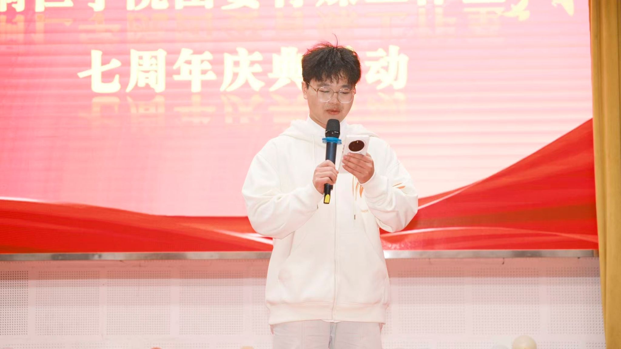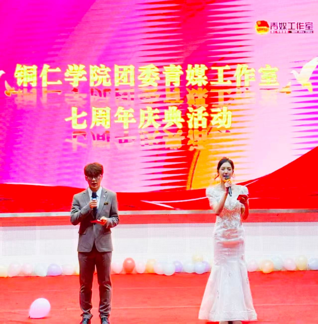 11月7日晚,bv伟德国际1946团委青媒工作室七周年庆典在人文生态馆举行。校团委副书记、工作室指导老师田淼,校团委兼职副书记张乐,校团委组织部、校学生会、学生社团管理部、青年志愿者服务大队、第二课堂管理中心代表,以及青媒工作室全体成员近200人齐聚一堂,共同见证这一温馨而充满活力的时刻。活动由余永娴、李明豪主持。