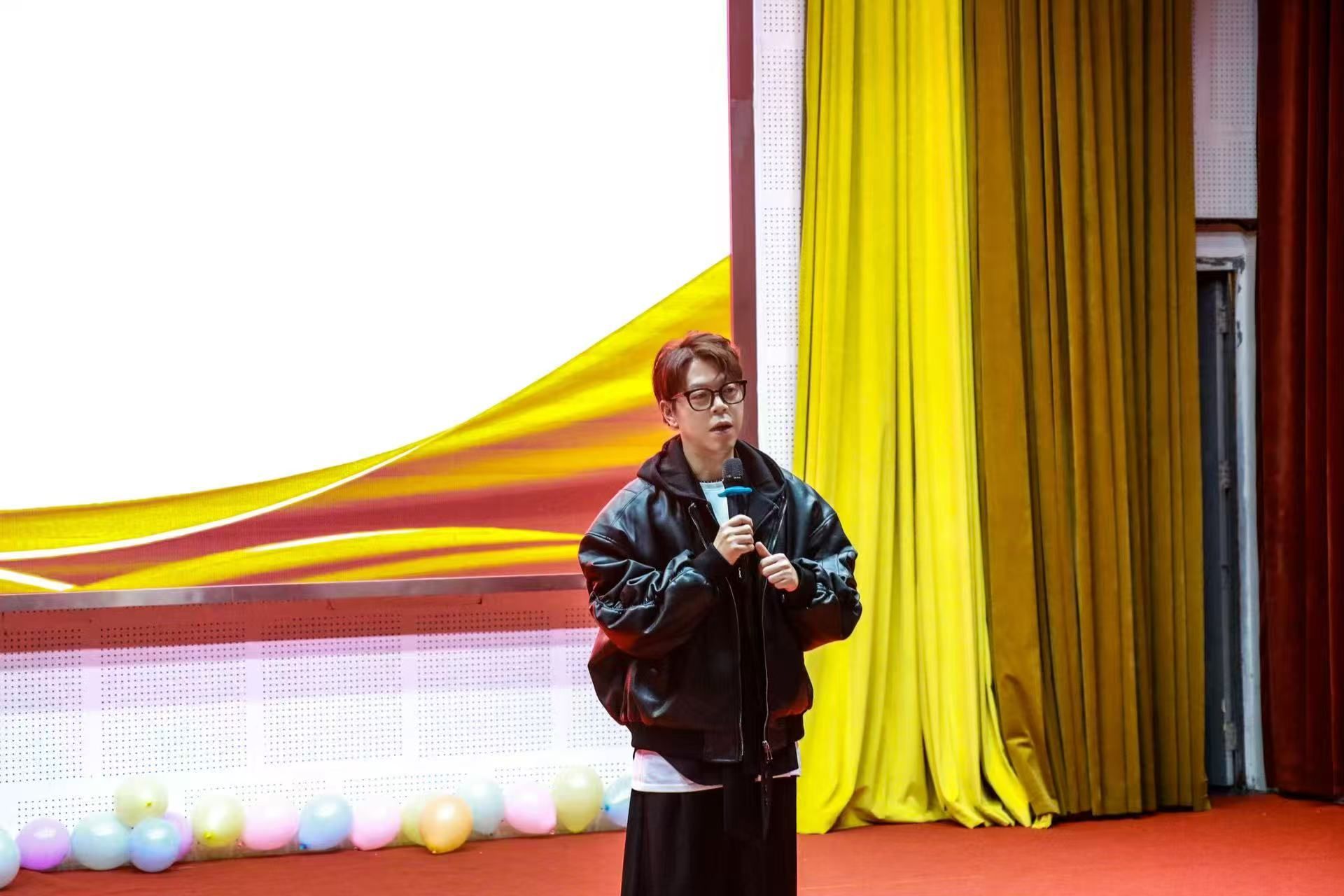 田淼老师随后登台,表达了对青媒工作室的深切期望与美好祝福,并现场展示了他为青媒工作室创作的主题曲《青春铜院》。他分享了创作背后的灵感来源——源于与同学们朝夕相处的点滴瞬间,青媒成员“从清晨到夜深,从初心到担当”的坚守与热忱深深感染了他。田淼老师将这首歌献给所有为青媒倾注心血的成员,并祝愿青媒未来继续闪耀,书写更加灿烂的篇章。