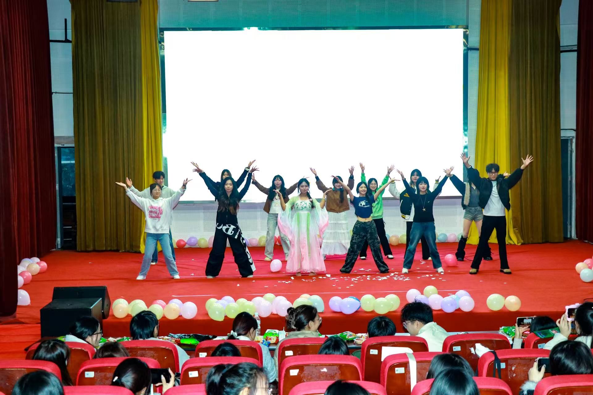 表演环节将现场气氛推向高潮。综合事务部的合唱《我和你》温情动人,采编部的《甄嬛传》配音秀生动有趣,网络宣传部的舞蹈串烧《青春速燃指令》点燃全场,媒体运营部的《暖暖》节奏明快,视图部的舞蹈《恋》柔美优雅,影音摄制部的《日不落》则洋溢着青春朝气。各部门精彩纷呈的节目,充分展现了青媒成员的才艺活力与团队凝聚力。