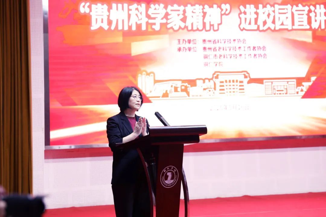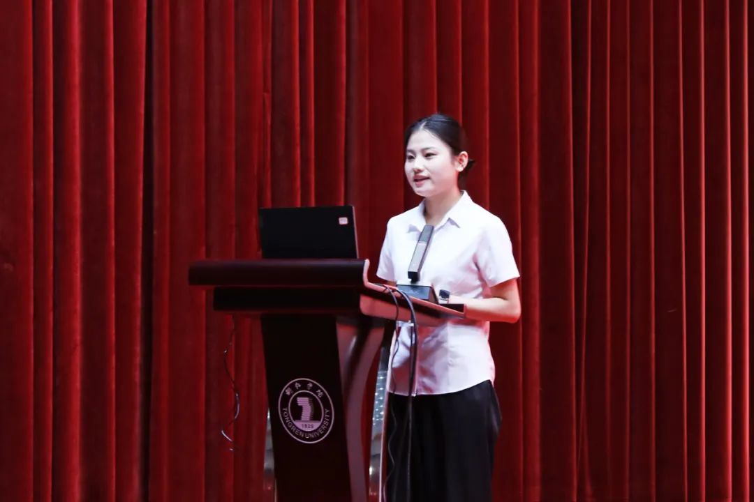 学生代表田茂茂同学在发言中,用“扎根、坚守、无私”三个关键词和大家分享了自己对“贵州科学家精神”的理解,并希望大家将个人职业规划与国家需求结,以贵州科学家为榜样,以贵州科学家精神为指引,保持对知识的渴望与好奇,勇于挑战难题,培养创新思维,树立远大理想,肩负起时代赋予的责任。