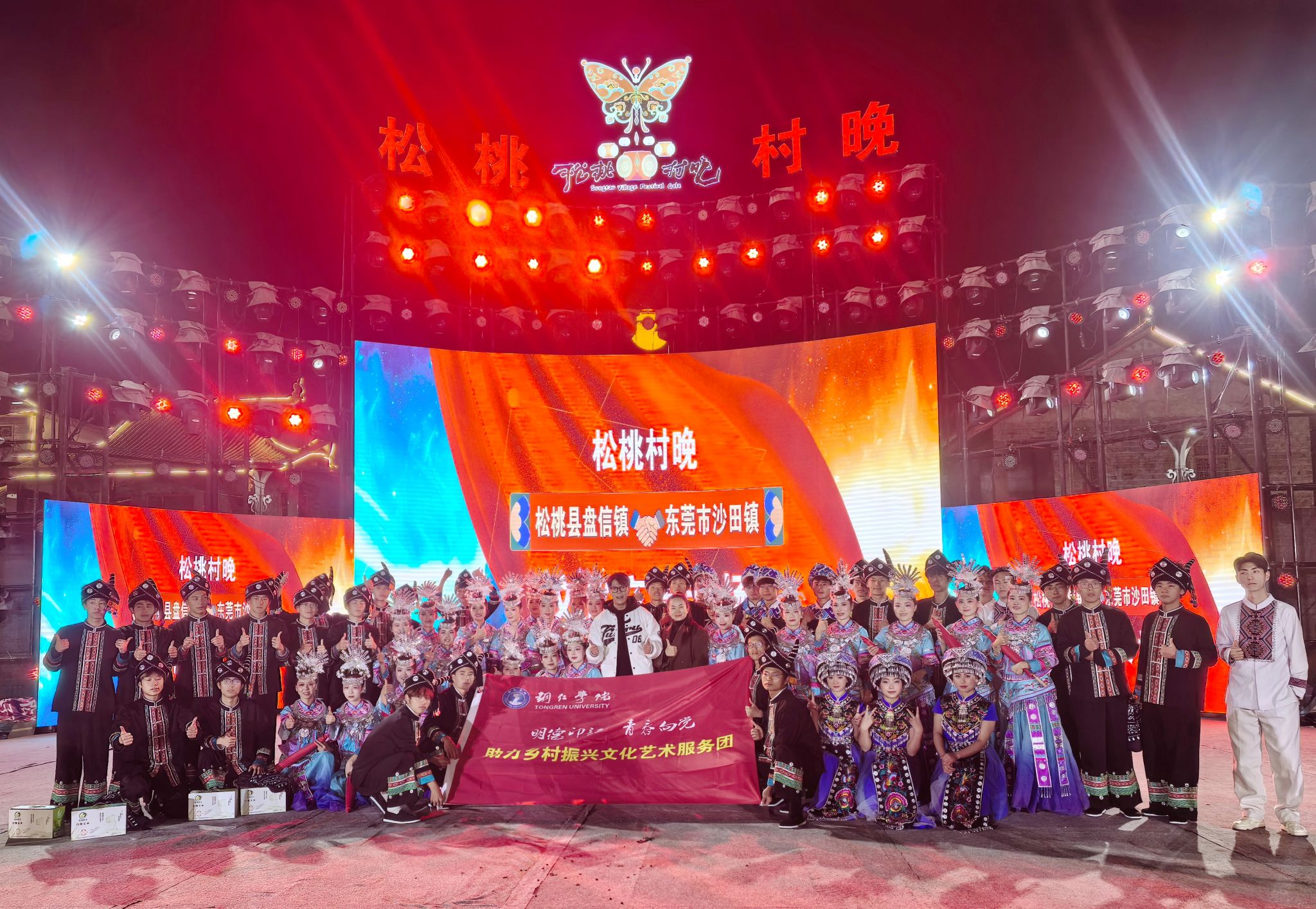 近日,伟德官网“明德印记·青春向党”助力乡村振兴文化艺术服务团一行67人,在校团委副书记田淼、教育学院杨松慧老师的带领下,再次走进“松桃村晚”舞台,与来自广东东莞沙田的文化团队联袂献艺,开展了一场别开生面的文化交流活动,用青春的创意与才华,为乡村振兴注入文化动能。