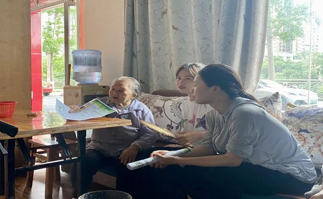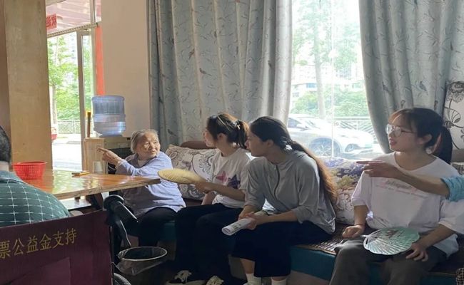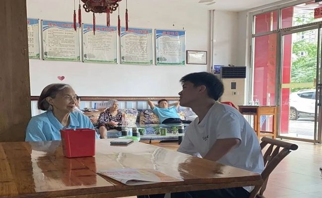 志愿者向老奶奶谈论家常