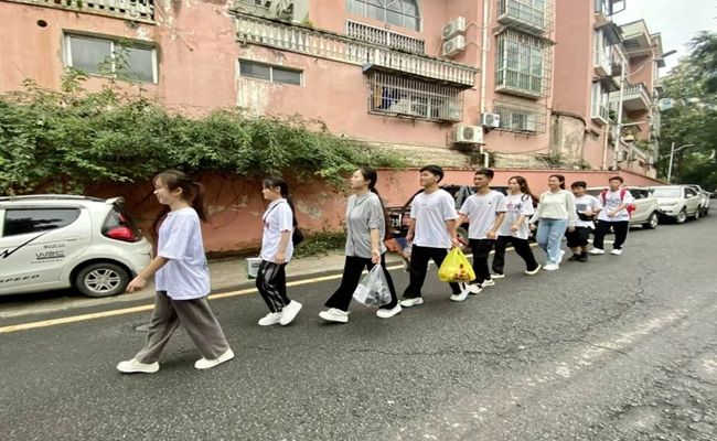 志愿者们前往养老院的路上