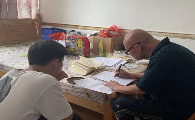 靠近厨房的房间里,住着一位不平凡的爷爷。爷爷曾是一名秘书长,博览群书,家里人都以他为傲。团队成员郑唯一在养老院负责人牵线搭桥下与爷爷沟通,一起下了足足两个钟头的象棋。下棋过程中,我们了解到爷爷由于身体原因来此养病。爷爷下棋时,会耐心地指点小伙伴,更多的是让他学到更多,有时也会沉思,走好每一步棋。除了下棋,爷爷还是中国书法协会元老级会员,曾写得一手好字,指点自己的孙女们成为了书法优秀人才,同时也获得了许多奖项。爷爷说:“书法使人延年益寿,看书解愁,写字忘忧,出了国门,难看见中国书法文化艺术,这是中华传统文化,我们要好好传承”。是的,我们应该谨遵教诲,传承优秀传统文化,接过时代的接力棒。在我们要离开时,爷爷不舍地写了一副作品,并分析了小伙伴写的字,让我们看到了一位学者的执着与热爱。爷爷给我们谈了很多心里话,让我们受益匪浅,我们亲切地答应爷爷,明年还去看他!