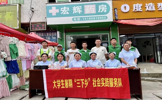 近日,伟德官网大健康学院健康关怀团队在院领导的支持带领下,深入松桃县大兴镇开展暑期“三下乡”社会实践活动。本次活动的主要内容是向当地居民宣传禁毒防艾知识和提供免费血压血糖检测服务等。