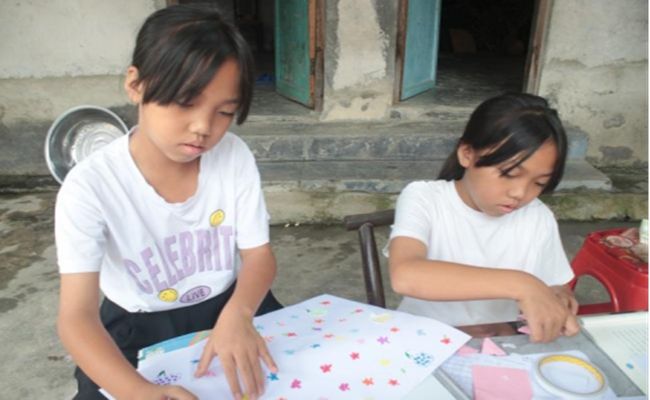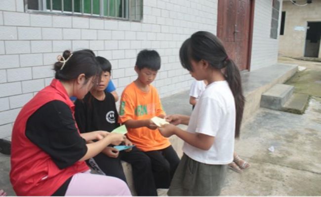 活动初始阶段,团队与社区书记交流,获悉坞坭社区全村辖11个村民组,该地区属于易地扶贫搬迁安置点,居民家庭经济条件较为困难。在实践活动过程中,志愿者以学业辅导为主,以手工课、绘画课、感恩教育和安全教育等特色课程为辅。志愿者每天以学业辅导为出发点,对孩子们的学科问题进行答疑解惑,同时以科学引导、交流互动等方式对他们的学习进行监督,不仅解决了孩子作业上的疑难杂症,还给予孩子学习方法指导和技巧总结,让孩子轻松寻找适合自己的学习方法,提高学习兴趣和自信。根据孩子的课堂反应对课程内容进行适当调整,使理论知识与实践操作充分结合,极大地调动孩子们的学习积极性,为孩子们提供了良好的外部学习环境,营造了浓厚的学习氛围。
