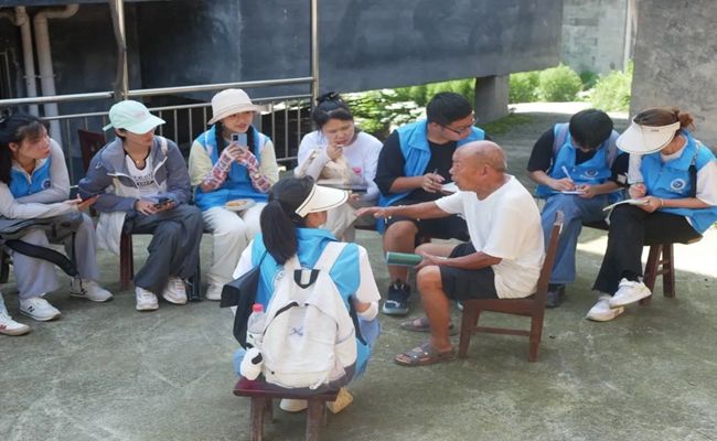 调研团队A组成员骆锐说:“初次调研,我们心中不免有些胆怯,然而村民的热情的邀请和回答、给我们洗自家的桃子,村干部的来回接送、帮我们联系老人等等种种行为和对于我们的疑惑非常认真解答,让我们完全沉浸在这种热情好客的环境中,渐渐忘记了心中的胆怯,勇敢投入调研当中。”