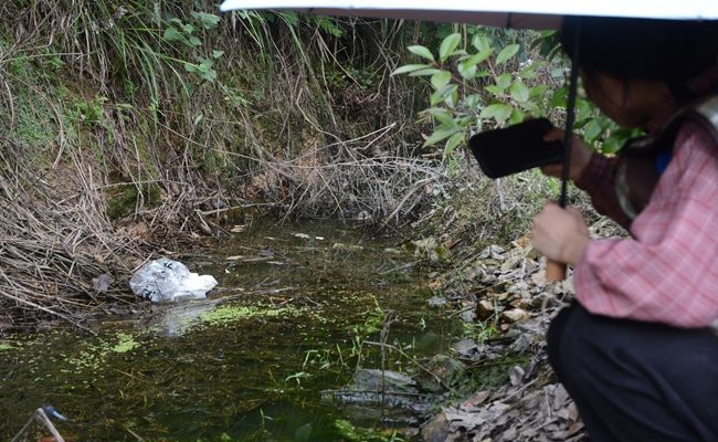 随后,环境治理小队前往三沛塘村,主要对当地的垃圾处理、河道水质情况进行考察。尽管沿途有不少散落在草丛的垃圾,但值得庆幸的是,三沛塘村的河流水质很好,引流管道通畅、分布富有技巧,充分体现了“高手在民间”。