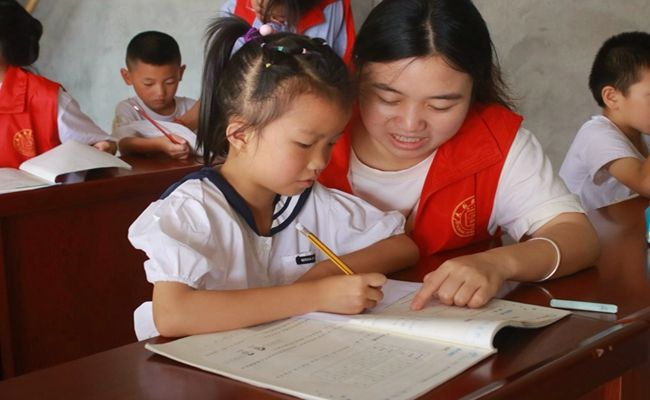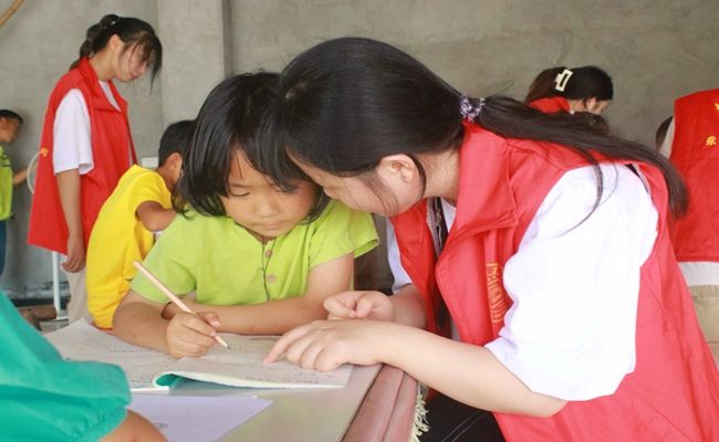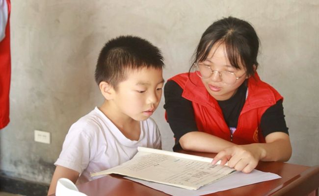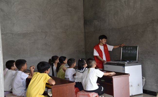 凉湾村位于铜仁市北部,该村儿童大多就读于铜仁市二十三小学,由于父母外出务工,他们多由祖辈照管,作业辅导较为困难。上午,助教队成员以语文、数学、英语暑期作业为主要辅导内容,帮助该村少年儿童进行知识的查缺补漏,补齐短板,促进当地少年儿童知识的均衡发展。