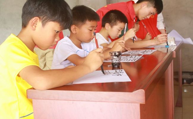 同时,为了使孩子们掌握书法的基本技法和理论知识,提升审美能力和艺术修养,志愿者给孩子们讲解了书法的握笔姿势、力度、远近高低握笔距离、运笔等内容,从而让孩子们养成良好的书写习惯。
