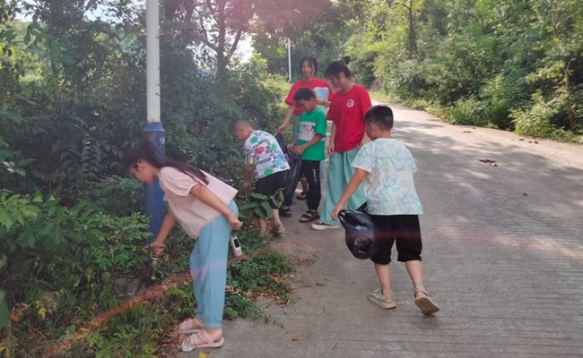 (雨润护苗行动团带领孩子们捡拾垃圾)