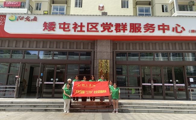 (实践团成员在矮屯社区党群服务中心门口合影)