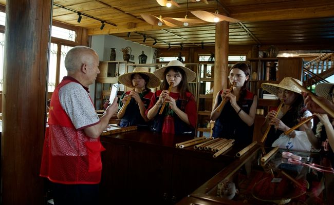 在指导老师杨治毅的带领下,青年推荐官文旅宣传小队走进了玉屏侗族自治县侗族风情园。在这里,古老的鼓楼巍峨耸立,它们不仅是侗族文化的象征,更是侗族人民心灵的寄托。小队成员们穿梭于鼓楼之间,感受着侗族文化的深厚底蕴,体验着非物质文化遗产——箫笛制作的独特魅力。那悠扬的箫声,仿佛穿越时空,将古老的故事娓娓道来。