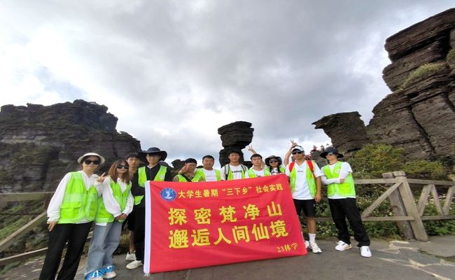 在贵州这片多彩的土地上,梵净山以其壮丽的自然风光和深厚的文化底蕴,吸引着无数探秘者的目光。作为暑期三下乡活动的一部分,梵净探秘队带着对自然和文化的热爱,以及对文旅融合的探索精神,开始了对梵净山的深入了解和宣传。前期,他们通过制作梵净山的宣传海报、视频或PPT,并利用电子媒介进行展示,然后邀请去过梵净山的校友分享其感受,以此来吸引更多同学的关注。