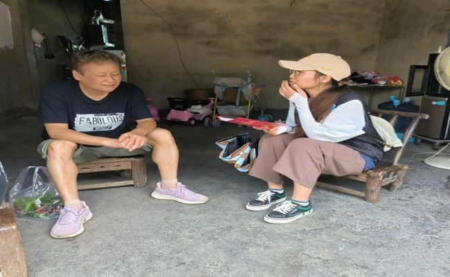 7月10日早晨,在灯塔村邱主任的带领下,宣讲队来到了村里的朝天椒种植地,参与辣椒采摘,以实际行动助力乡村振兴。采摘结束后,宣讲队成员们没有停下脚步,而是深入农户家中,卷起衣袖,与村民们一同投入到繁忙的农事活动中。在这个过程中,了解到村民黄伯伯是汉族人后,廖思思结合自己本民族的特色,向大家分享了布依族的民族节日“三月三”。赵家澍同学表示,自己也是汉族人,并向村民们分享了自己家乡河南的特色习俗。宣讲现场气氛热烈欢快,村民们深刻地感受到中华民族是一个平等、团结、互助、和谐的大家庭。