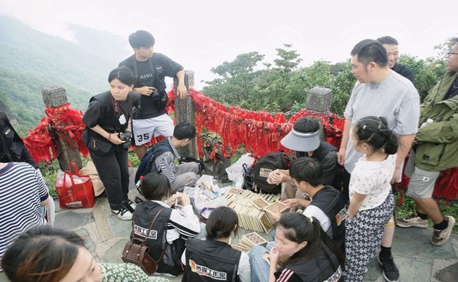 下缆车后,经过半个小时的徒步,实践队到达梵净山著名打卡景点——蘑菇石,开始了为游客免费拍照、现场打印并装裱赠送的公益活动。“我一直希望能为来到铜仁旅游的游客们做些什么,让他们不虚此行。通过我们免费为他们拍照的方式,希望能让游客对梵净山之行印象更加深刻,不断向身边的朋友推荐来梵净山旅游观光。”实践队队员舒佳瑞说道。