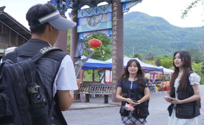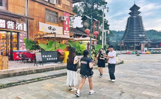 8日下午,实践队一行人来到了以“月上寨沙”文艺实景演出闻名的寨沙侗寨。近年来,寨沙侗寨依托民族特色旅游资源、夜间景观环境、特色文化符号培育了文化和旅游消费新业态。在下午的直播间中,实践队成员通过直播镜头,向观众们展示了寨沙侗寨的古色古香与热门打卡景点。整个直播过程中,主播、运营、摄影等岗位的队员们各司其职,保证整个直播过程能够有条不紊地进行。据统计,两场直播累计点赞量高达4万余次、在线观看量超3000人。