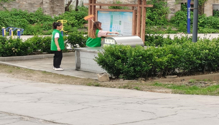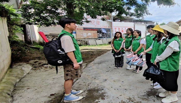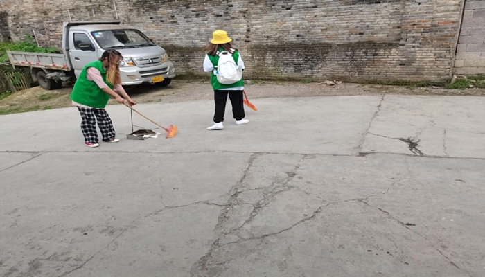 活动进入最后一日,志愿者们决定为村民们做一些更有意义的事,他们为乡村进行环保工作,村寨的道路上有一些白色垃圾,经过村委书记的允许后,志愿者们借助村民的环卫工具展开清理垃圾的志愿活动。