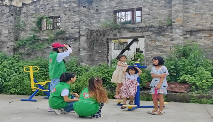 随后,志愿者们来到村里的公共娱乐场所,和村里的孩子们一起玩,在这过程中询问他们的日常生活和需求。志愿者们了解到,村里的孩子们都需要去五公里之外的正光街道读书,说明村子里对教育资源需求很大。