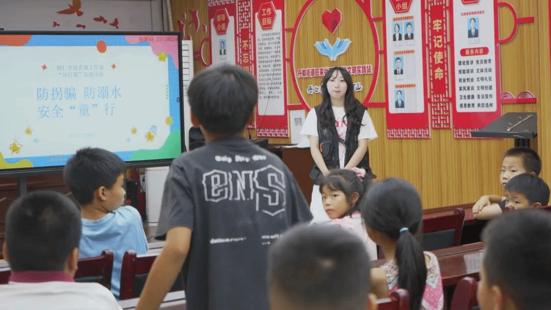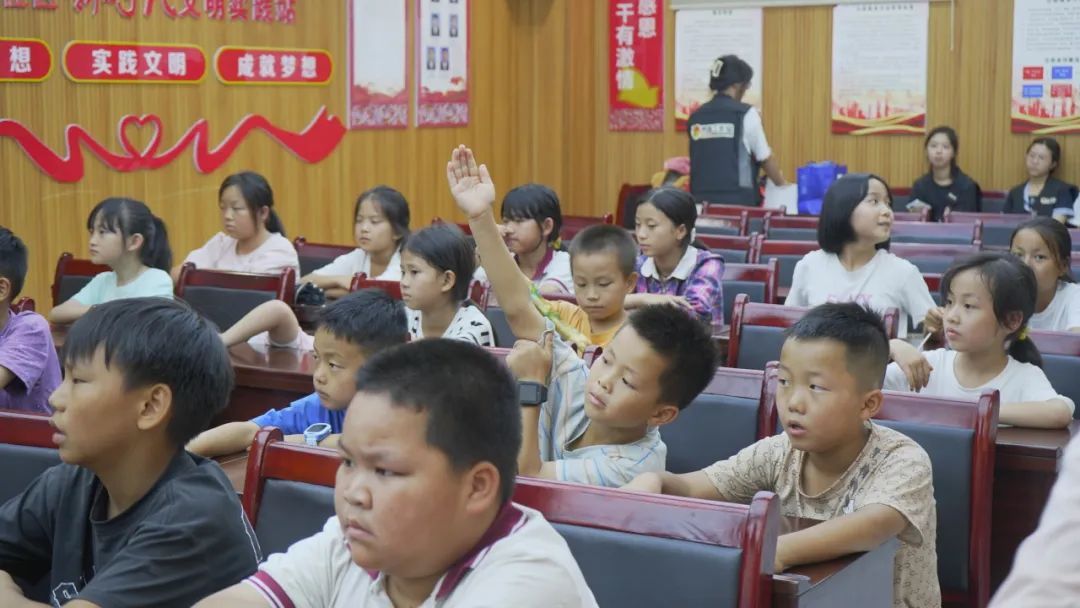 活动伊始,实践队队员王晓雨先作简单自我介绍并说明活动目的,随后通过生动有趣的PPT,向孩子们系统讲解校园霸凌应对方法、诈骗陷阱识别技巧及防溺水安全知识。讲解过程中,孩子们坐姿端正、专注聆听,面对提问踊跃举手发言。被问及如何正确应对校园霸凌时,徐俊楠小朋友回答:“遇到霸凌要告诉父母和老师,不能害怕退缩;看到别人遭遇霸凌,也要用合理方式帮助解决。”其他孩子也相继补充,“要告诉警察”“坚决对校园霸凌说不”,现场互动氛围热烈。