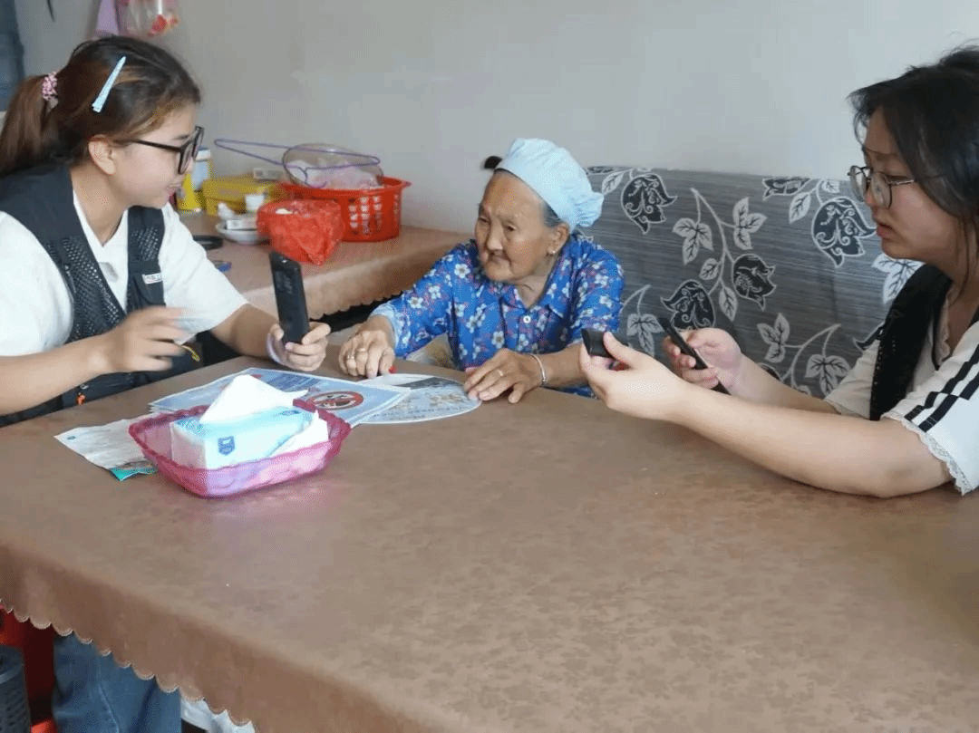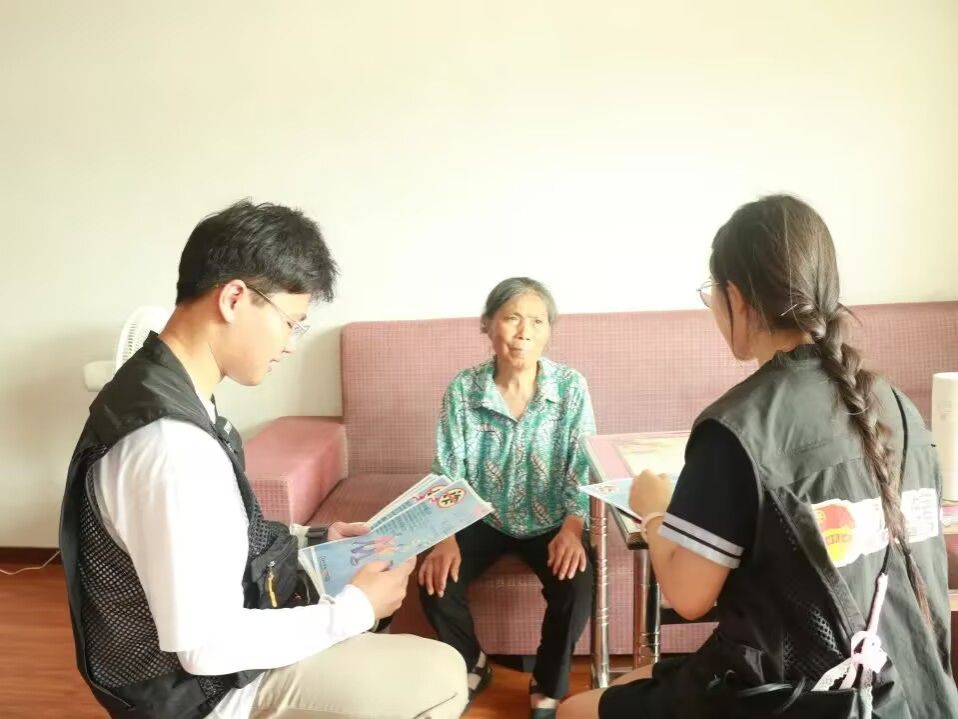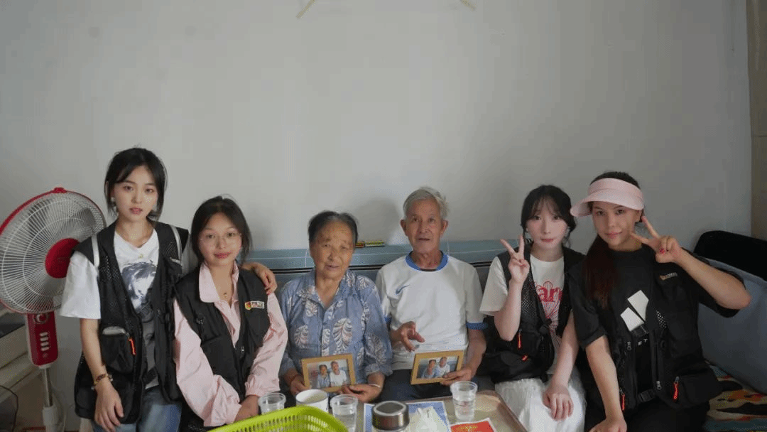 走访中,刘忠光夫妇虽年事已高,但思路清晰、警惕性强。交谈间,老两口不时互相打趣,聊起诈骗案例时,更是神采飞扬地分享起他们运用社区和志愿者宣传的防诈骗知识,与诈骗分子“斗智斗勇”的趣事。独居的李朝珍老人性格开朗,谈及近况时说,自己每天晚饭后都会出门散步锻炼身体。当她向队员们反映遥控器无法控制电视的问题时,队员们当即手把手教她正确使用方法,帮老人解决了难题。任柳群老人多次称赞社区“儿童之家”为孩子们提供了良好的学习和娱乐场所。得知“向日葵”实践队此次在社区开展公益摄影活动,她高兴地叫上孙子孙女,一同与队员们合影留念。