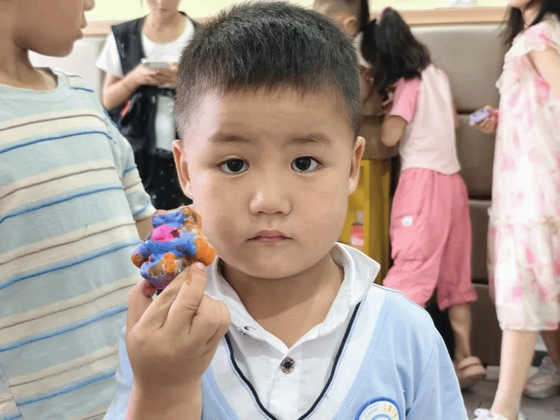 拿到心仪的石膏娃娃后,孩子们拿起五彩颜料兴致勃勃地为娃娃上色,过程中不时向队员们请教:“老师,粉色怎么调?”“老师,有清水洗笔吗?”“老师,还能再画一个吗?”完成创作的孩子纷纷手持作品合影,队员们现场将拍摄的照片打印出来,用相框裱好赠送给孩子们。