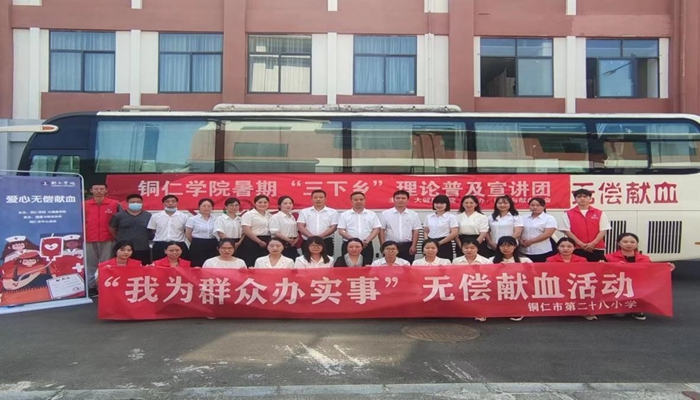 血液一直被视为活力与健康之源,具有重要的生理意义,医疗临床用血在临床治疗和抢救及战备中都起着重要作用。实行无偿献血,能保障医疗战备临床用血的需要,保证输血安全,达到治病救人的目的,它还是一种“我为人人,人人为我”的社会共济行为,是一种无私的奉献,是人道主义精神的重要体现。为了给更多人普及献血知识,让更多的人主动加入到无偿献血的队伍中来。正值中国共产党成立101周年,为大力弘扬伟大建党精神,深入推进精神文明建设。市中心血站开展“热血跟党走,献血庆七一”无偿献血主题活动“为生命接力,为爱蔓延。”为此,2022年7月1日——7月3日,bv伟德国际1946献血知识普及志愿服务队在铜仁市三个地点,铜仁市第二十八小学、爱康国宾体检中心和爱心献血屋,与铜仁市中心血站一起开展爱心无偿献血活动,和献血知识宣讲。