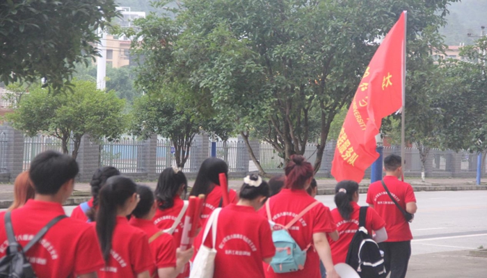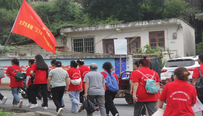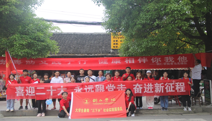7月8日,由伟德官网第八期青马班20余名学员组建的“bv伟德国际1946青马先锋队”在校团委张迅老师的带领下,前往碧江区川硐街道开展以“喜迎二十大、永远跟党走、奋进新征程”为主题的暑期“三下乡”社会实践活动。活动围绕“民族团结一家亲,心手相牵向未来”“禁毒防艾践行,健康相伴你我他”等内容进行宣传,得到了川硐街道天生桥社区支部书记张荣、支部副书记张清平及各相关工作人员的大力支持。