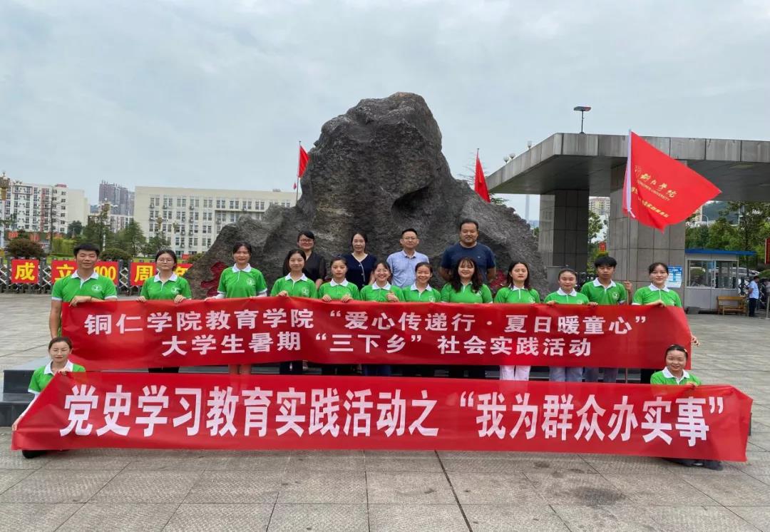 2021年7月22日,bv伟德国际1946教育学院组织开展了党史学习教育“我为群众办实事”暨“爱心传递行•夏日暖童心”大学生暑期“三下乡”社会实践活动出征仪式。校党委委员、统战部部长刘德平、教育学院分党委副书记胡慧、学生科科长龙兴林、团总支临时负责人钱丽红出席出征仪式。