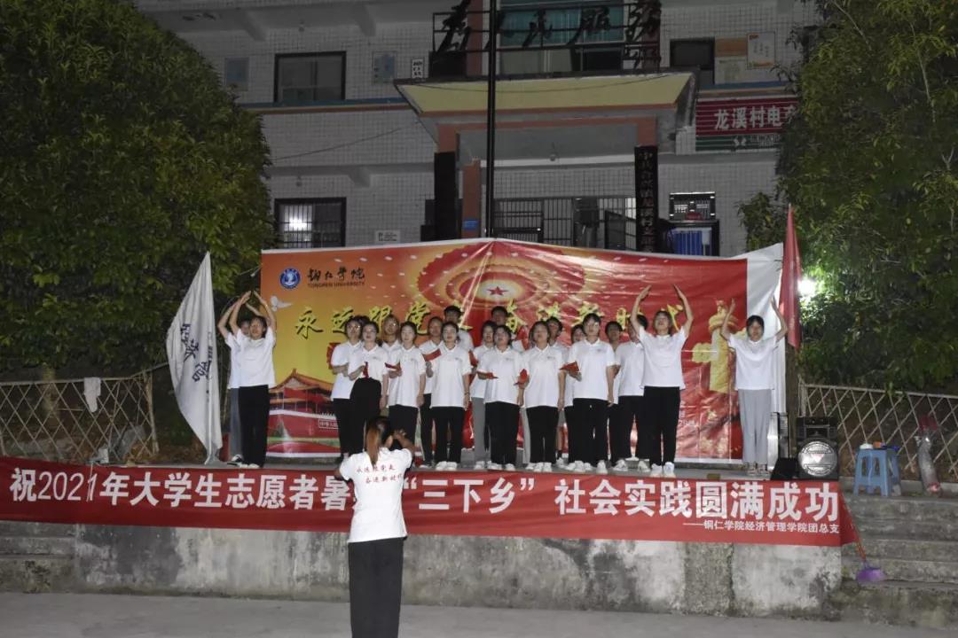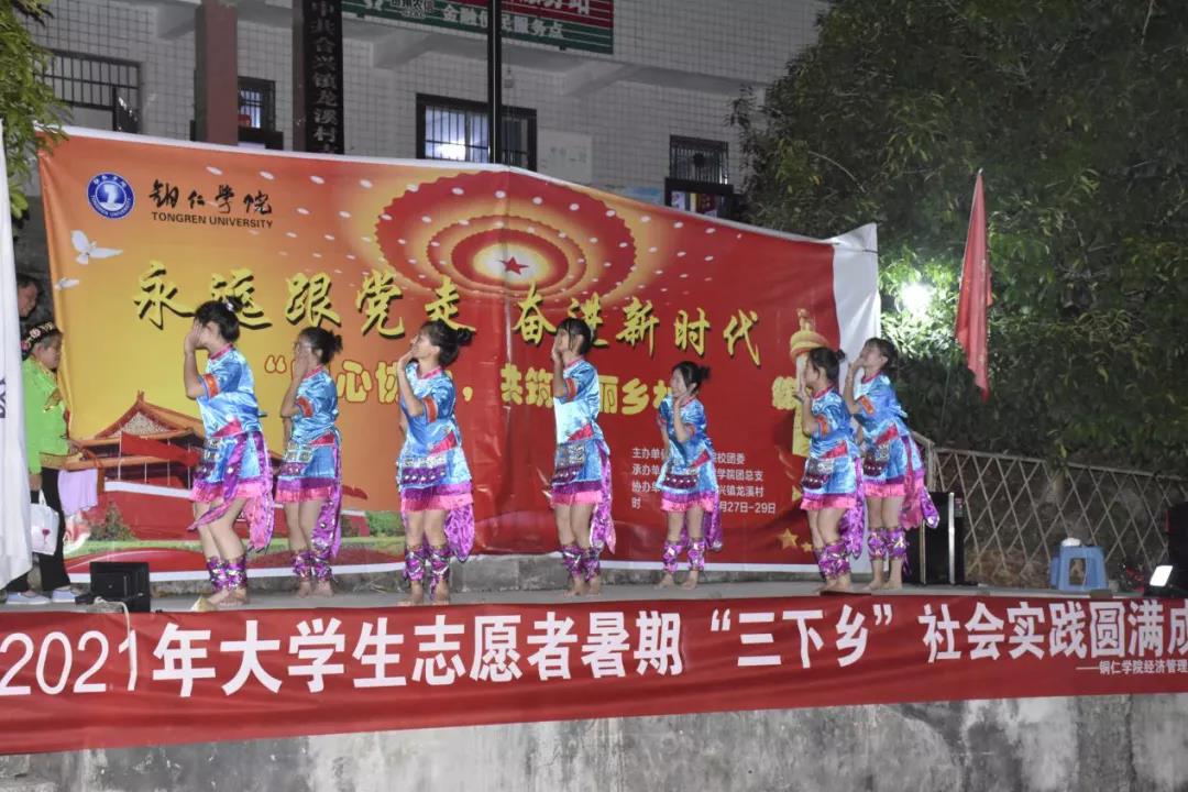 下午,我们进行了文艺汇演,与村民们欢聚一堂,用动听的歌声给炎炎夏日降温;用飞跃的舞步释放满怀的激情。当地村民也带来了他们的传统舞蹈、传统乐器表演,希望能增强大学生们发扬传统文化的精神。现场载歌载舞、精彩纷呈、高潮迭起,充分展现了铜院学子的青春活力和良好精神风貌。在一片欢声笑语和一阵阵热烈掌声中整个活动落下了帷幕。
