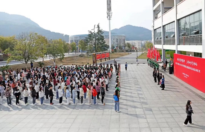 学校党委委员、宣传部部长叶丹,教务处处长龚静,组织部副部长周慧娟,学工部副部长武国丽,团委副书记张朝飞出席仪式。各二级学院团总支书记、校团委全体团干、学生志愿者代表共三百余人参加了仪式。
