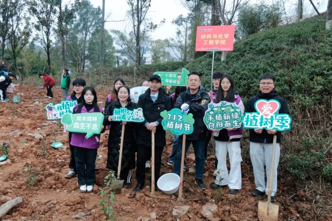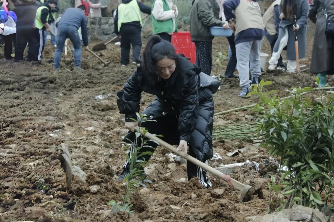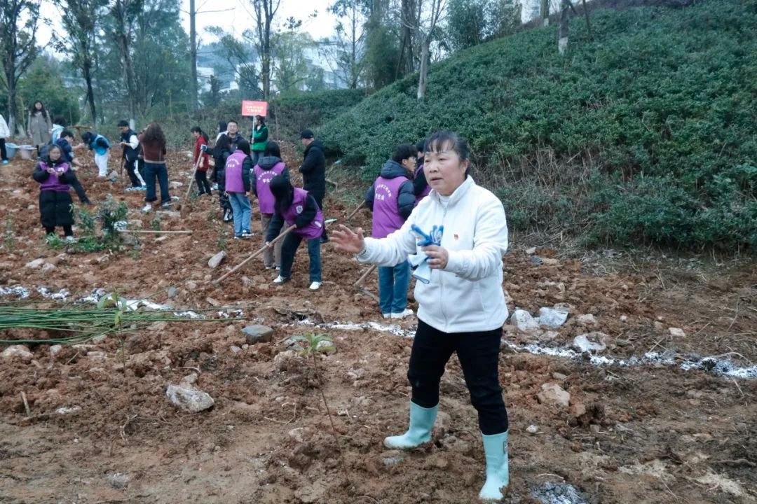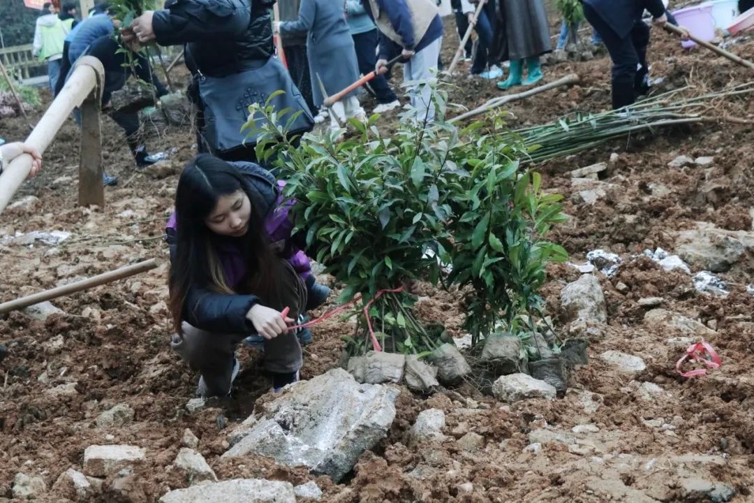 在举行简短的启动仪式后,植树活动正式开始。各学院师生按照划定区域,分工协作,相互配合。挥锄挖坑、扶苗填坑、培实新土、浇水定根……大家热情高涨,干劲十足,将一棵棵小树苗稳稳地种植在铜院的土地里。此次活动,大家积极投身植树护绿行动当中,用劳动诠释着对铜院的热爱,在活动中享受自然的春意。