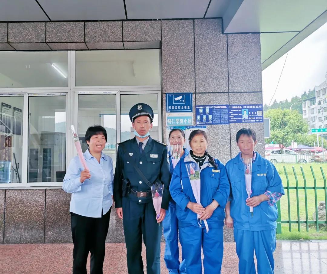 活动最后,志愿者代表将鲜花送给各部门老师、保安叔叔、食堂阿姨、环卫工人等手中,并真诚的对他们说上一声“辛苦了”。