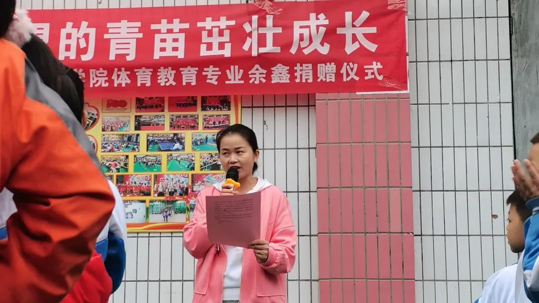 本次捐赠仪式共有五项议程,分别为校长杨爱希讲话、bv伟德国际1946青年志愿者服务大队支教负责人王涛讲话、捐赠者余鑫发言、受捐学生代表发言,以及捐赠仪式。本次捐赠方为bv伟德国际1946大健康学院体育教育专业余鑫同学向博文小学捐赠羽毛球、篮球、乒乓球拍、毽子等体育用品。