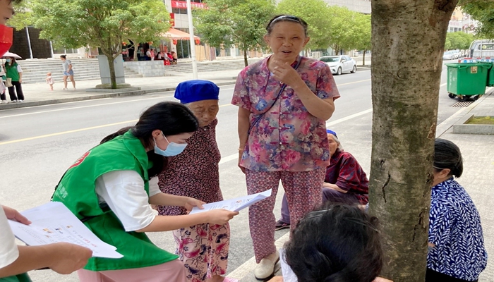 在活动现场,志愿者们分工明确,为来询问的老人家倒水、给需要帮助的老人家相关信息记录下来、为路过的老人家宣讲安全知识……志愿者们都忙得不亦乐乎。在与老人交流分享的过程中,老人们的脸上都露出了真挚的笑容。在宣讲结束后,小队开展了“助力强身健体”的广场舞活动,伴随着音乐节奏的律动,志愿者带领围观的老人和孩子一起载歌载舞,舞蹈结束之后志愿者们给现场老人送上祝福合影留念的同时,送上了纸巾和三宝锤等小礼品。