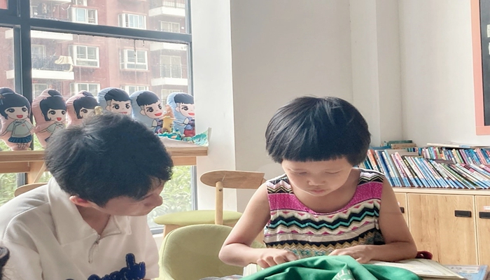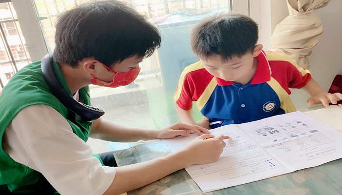 志愿者教导小朋友写作业