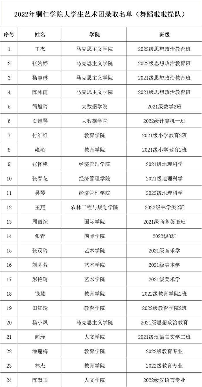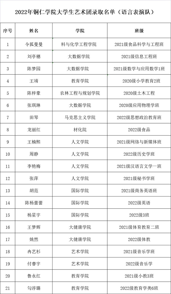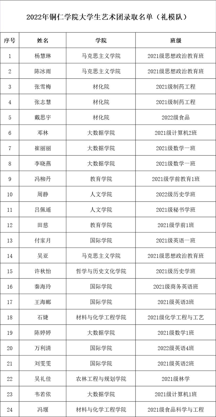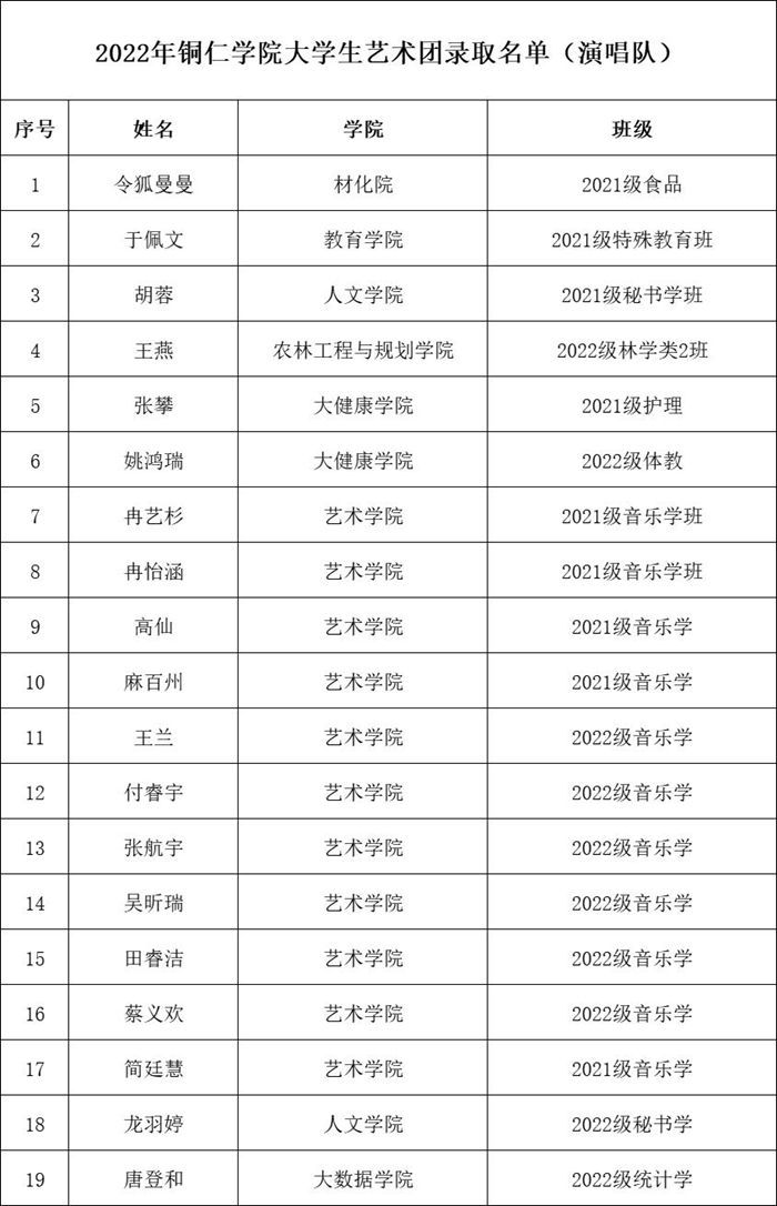 近期,伟德官网大学生艺术团招新工作圆满完成。经过学生自主报名、各院推荐报名等多种方式,招募语言艺术、舞蹈啦啦操、礼模、演唱等艺术爱好者,共210人报名,最终由艺术团指导教师及专业教师进行面试考核选拔,共有84名同学脱颖而出,现将录取名单予以公告(排名顺序不分先后)。
