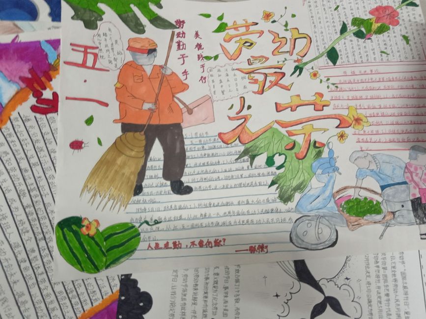 在创作劳动节手抄报的过程中,多数同学能以丰富多彩、形式多样的手抄报,来展现自己的创作风格,并且突出主题,锻炼了学生的多方面的表现能力。
