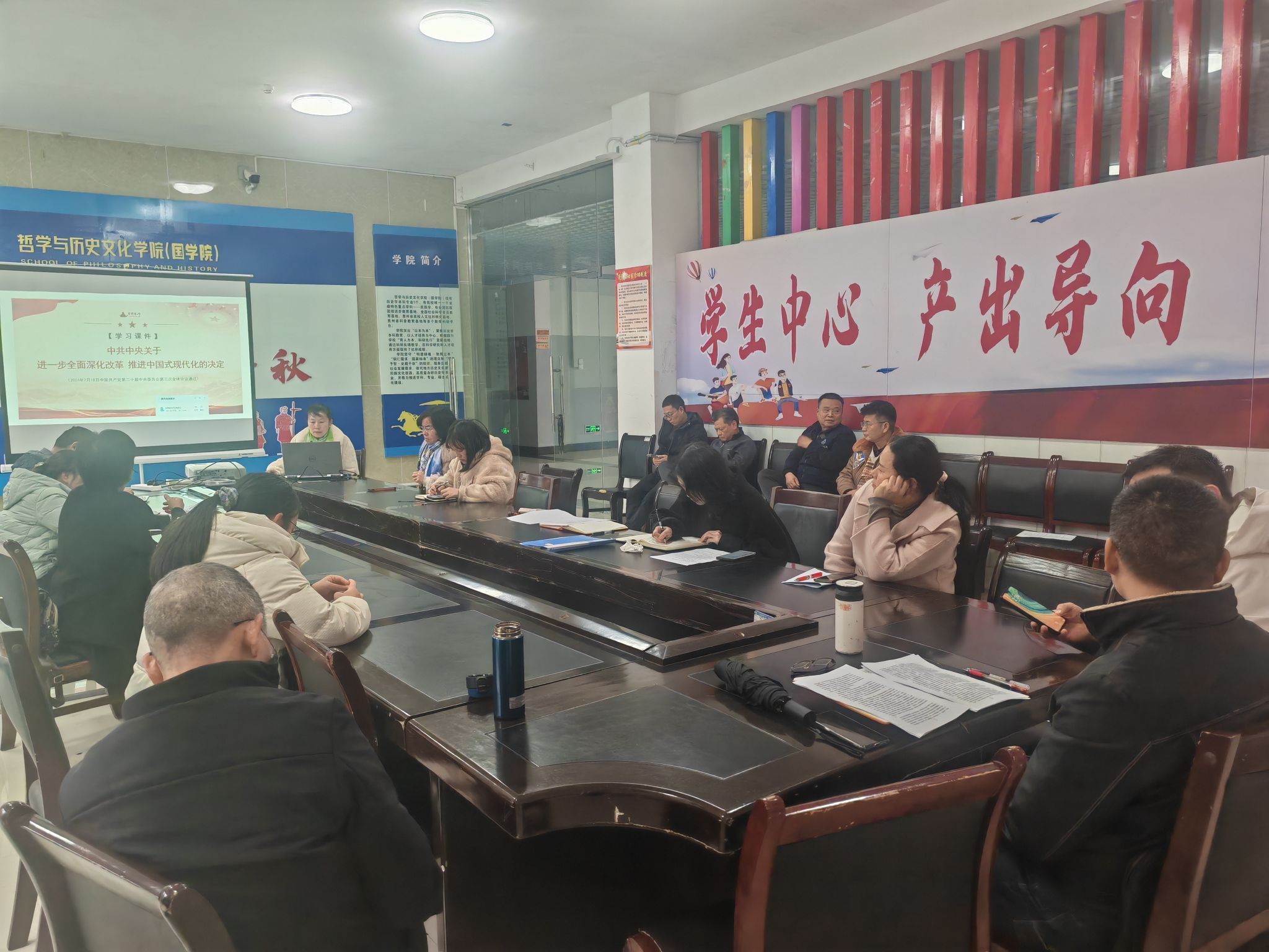为深入学习贯彻党的二十届三中全会精神,在全面深化改革中推进中国式现代化,11月25日,我院在音乐楼一楼会议室开展学习贯彻党的二十届三中全会精神专题宣讲活动,由教工支部书记史泠歌同志主讲,全院师生党员参加。