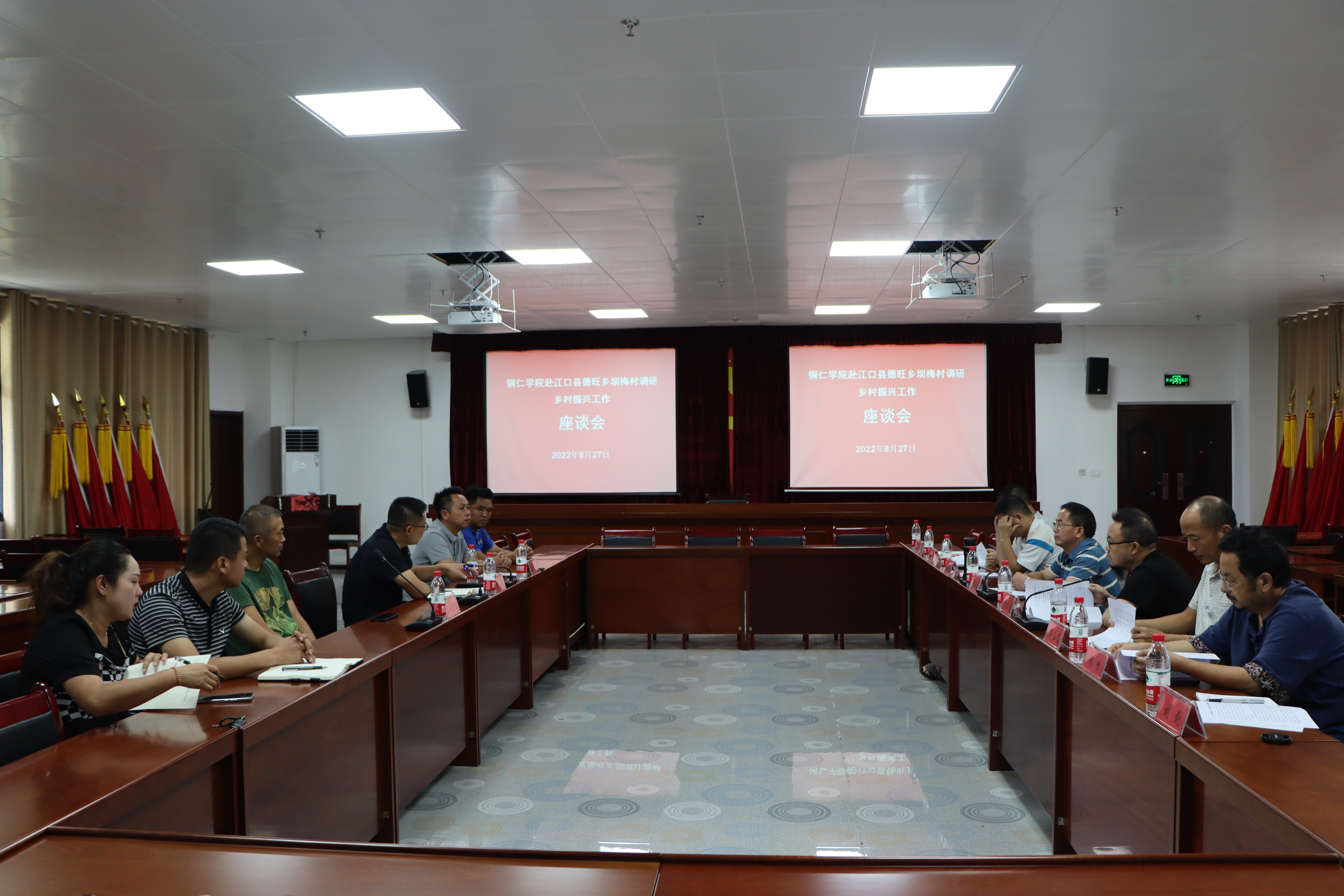 上午,调研组一行到江口县德旺乡坝梅村调研并召开座谈会。会上,与会人员观看了德旺乡宣传片,德旺乡党委书记刘小清主持会议并向与会人员介绍了德旺乡资源禀赋、规模企业发展,以及推进脱贫攻坚与乡村振兴有效衔接的策略与成效等情况,表达了校政合作愿景。坝梅村党支部书记汪学权介绍了坝梅村概况及与乡村振兴战略实施情况,贵州梵净体旅开发有限公司总经理韩兵介绍了基地运营情况。龙开义等人围绕坝梅村传统文化保护传承、红色文化挖掘利用、特色产业发展、康养、研学等提出了建设性意见或建议。双方还就进一步深化党建帮扶事宜进行了沟通交流。