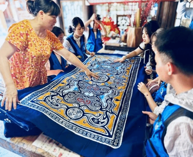 在养怡书院,实践队员们在非遗传承人、bv伟德国际1946哲学与历史文化学院龙智先教授的带领下,深入体验苗族非遗文化,参与苗绣、扎染等传统手工艺制作,亲身感受苗族传统文化的独特魅力。实践队员们充分发挥专业特长为大湾苗寨拍摄宣传片,希望通过宣传让更多人知道了解这个地方,吸引游客前来旅游观光,助力当地经济发展。“当看到村民们收到全家福时脸上洋溢的笑容,我深刻体会到我们所做的事情虽小,却能给他们带来巨大的快乐。在宣讲过程中,我锻炼了自己的表达能力,更明白了将理论知识转化为群众易懂语言的重要性。尤其是沉浸式接触苗族非遗文化,仿佛打开了一扇新世界的大门,传承文化的使命感在我心中油然而生,明年我还要继续参加……”实践队队长游燏声动情地说。通过这次实践,增进了群众对中华民族共同体意识的理解,有效促进了各族人民团结奋进。这些年轻的身影带着故事和思考返回校园,石榴花的种子已在心田生根发芽。