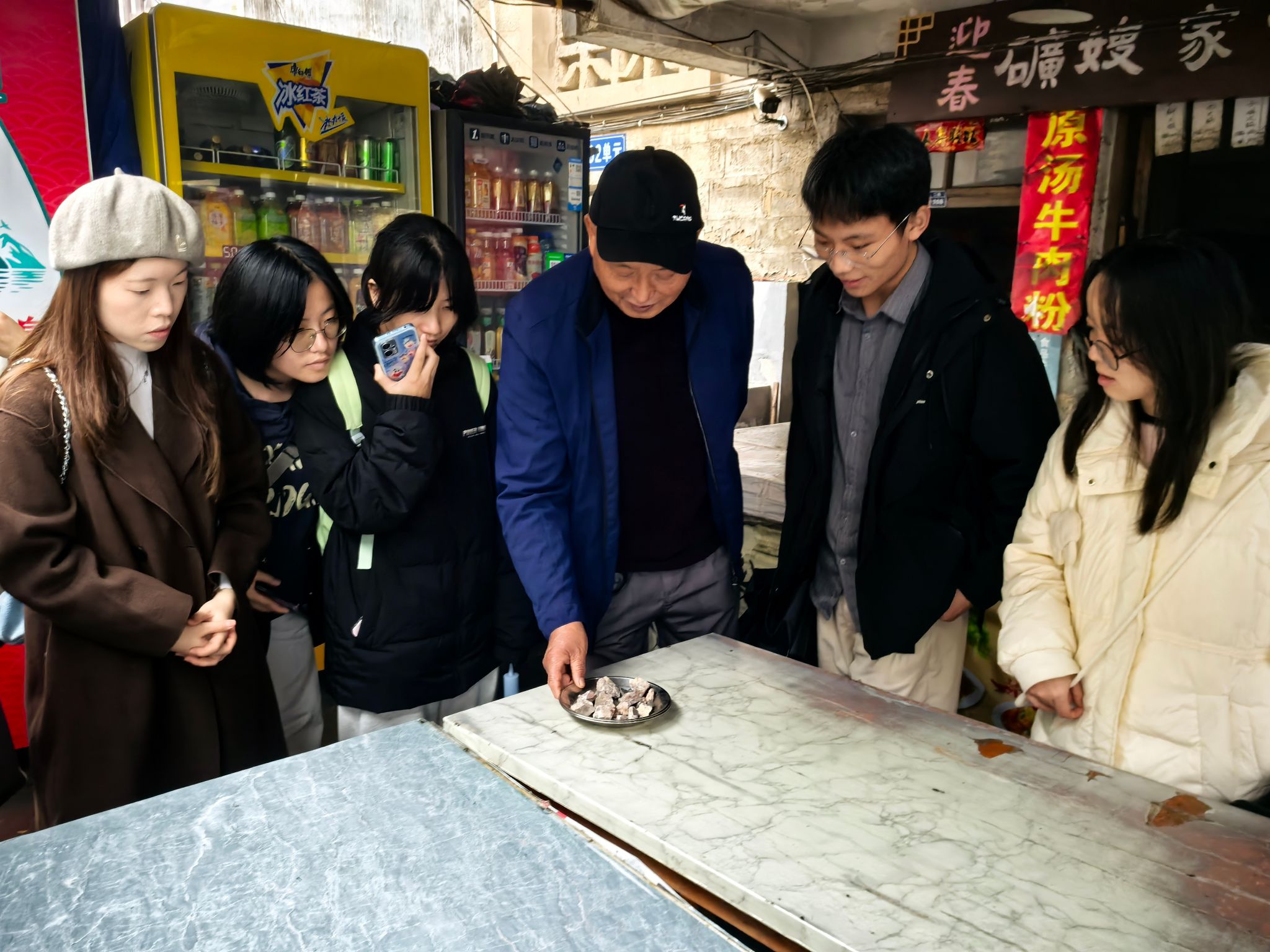 调研期间,师生深入“地下长城”汞矿开采遗址,实地探访古老矿道、采矿工具与作业场景,近距离感受丹砂工业遗产的原始风貌与沧桑底蕴。在“那个年代”怀旧街区,同学们结合调研主题分组行动,主动与社区居民、经营商户、过往游客等群体开展访谈交流,围绕遗产保护现状、旅游开发影响、文化传承路径等问题收集一手资料,在实践中深化对文化遗产保护复杂性与重要性的理解,为后续研究分析奠定了扎实基础。
