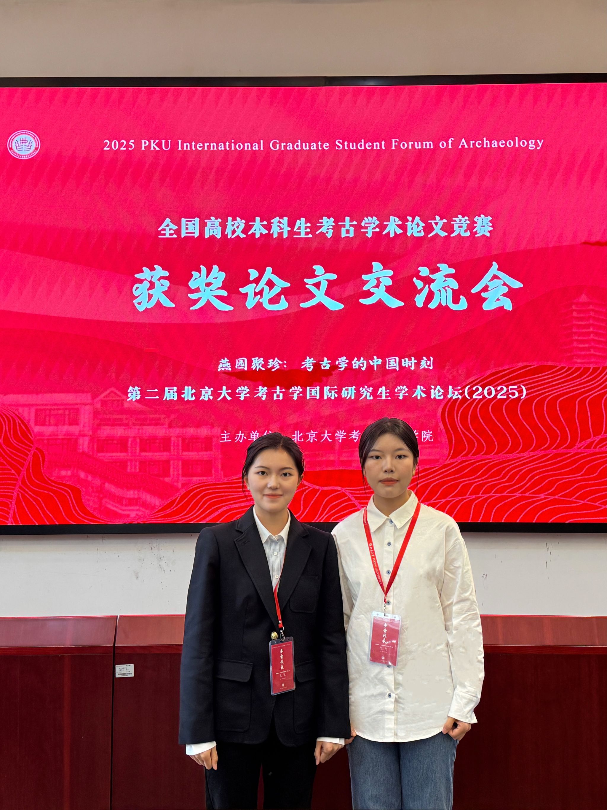 10月24日至27日,由北京大学考古文博学院举办的“燕园聚珍:考古学的中国时刻”——第二届北京大学考古学国际研究生学术论坛在北京大学举行,来自海内外的专家学者和青年学子100余人参会。我院2022级历史学本科专业学生李非霏和孙悦两位同学代表团队受邀参会,并在全国高校本科生考古学术论文竞赛获奖论文交流会上作交流发言。