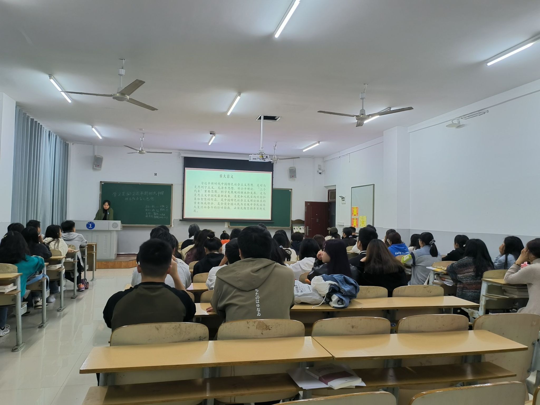 我院各班围绕主题展开了学习。如2021级宣讲员围绕习近平新时代中国特色社会主义思想向同学们叙述了思想内涵以及当代价值,让同学们深入了解当代思想。2023级宣讲员通过PPT的形式讲述了新时代的奋斗目标:在深刻把握重大意义中增强学习贯穿的政治自觉,思想行动自觉。同学们通过讨论的形式学习贯彻习近平新时代中国特色社会主义思想,把握这一重要思想的世界观和方法论。