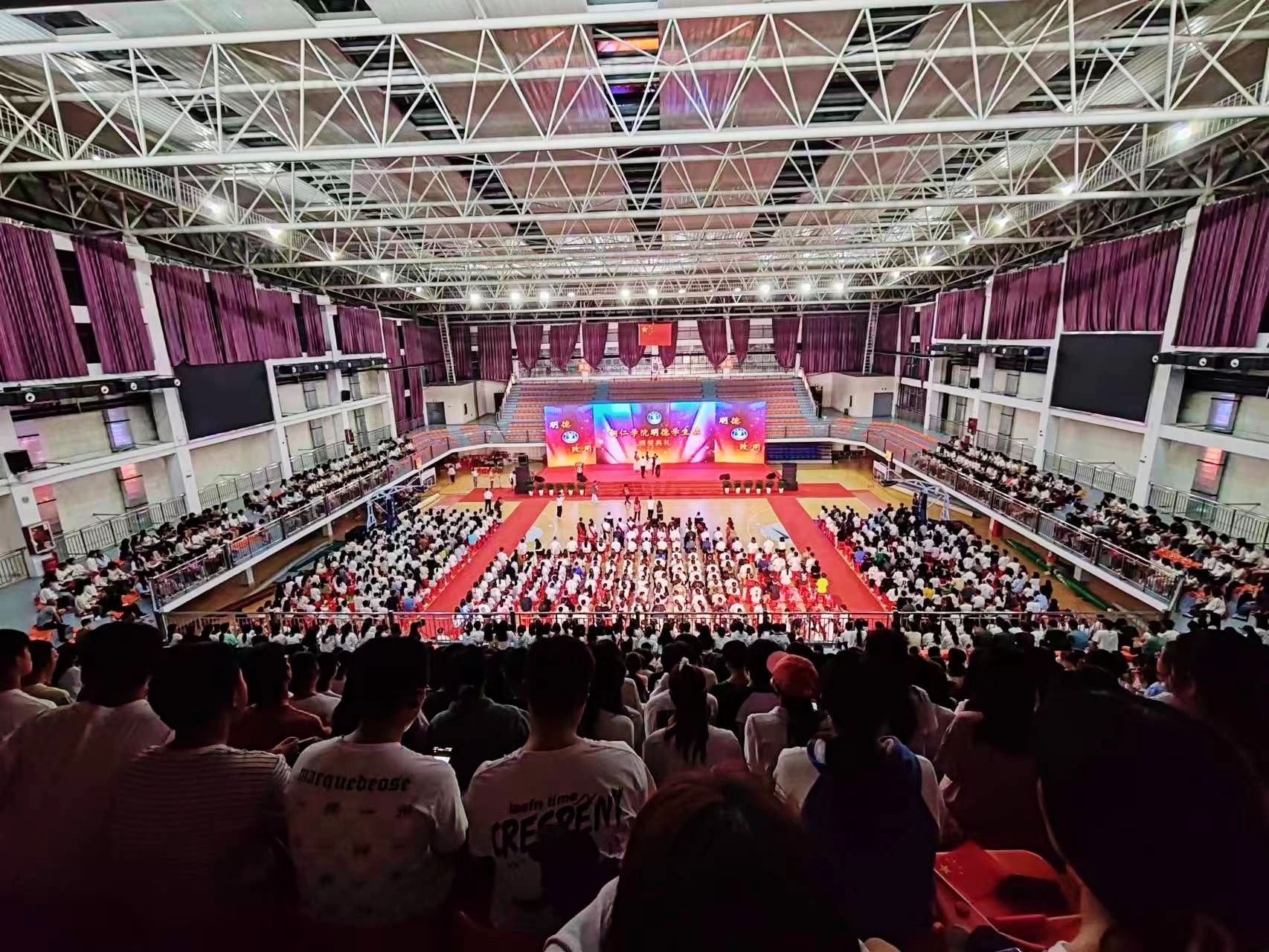 9月27日晚,伟德官网在体育馆举行2023年(第九届)“明德学生奖”颁奖典礼。校党委书记朱洪波、校长朱克乾出席并为获奖者颁奖,副校长罗静主持典礼,副校长杨建宣读表彰文件。各二级学院党委书记、院长及分管领导,相关职能部门负责人、获奖者、2023级全体本科生及硕士生参加本次颁奖典礼。