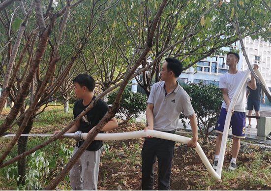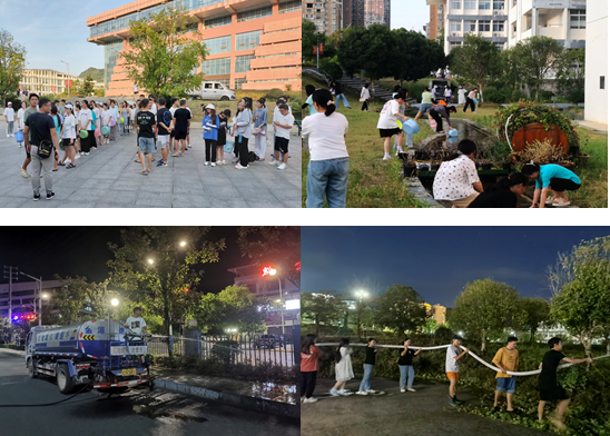 为了提高工作效率,我处充分利用学校现有喷灌设施,协调来绿化部门的洒水车,同时向全校师生员工发出“齐动手,共抗旱,守护绿色校园”抗旱保绿倡议书。抗旱现场,同学们从宿舍自带水桶水盆,打水浇树,无数次往返,不惧酷暑。带队参加抗旱的发规处副处长吴承品说:同学们很辛苦,但很开心,校园花花草草更开心,浇水画面很和谐,是校园该有的样子。