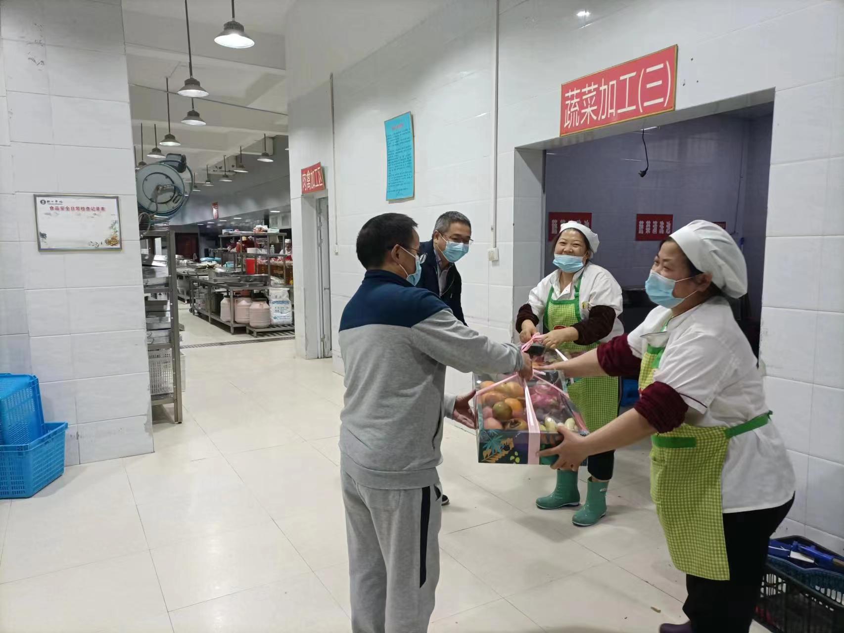 副校长杨建、组织部部长梁正海为食堂员工送节日慰问品