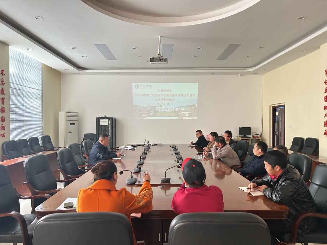 2023年3月30日,后勤管理处在308会议室召开2023年度第二次食品安全例会暨食品安全总监首次月调度管理会,膳食科科长符开沈主持会议。膳食科、各食品安全管理员、自办食堂及联合托管经营食堂和超市、门店负责人参加会议。
