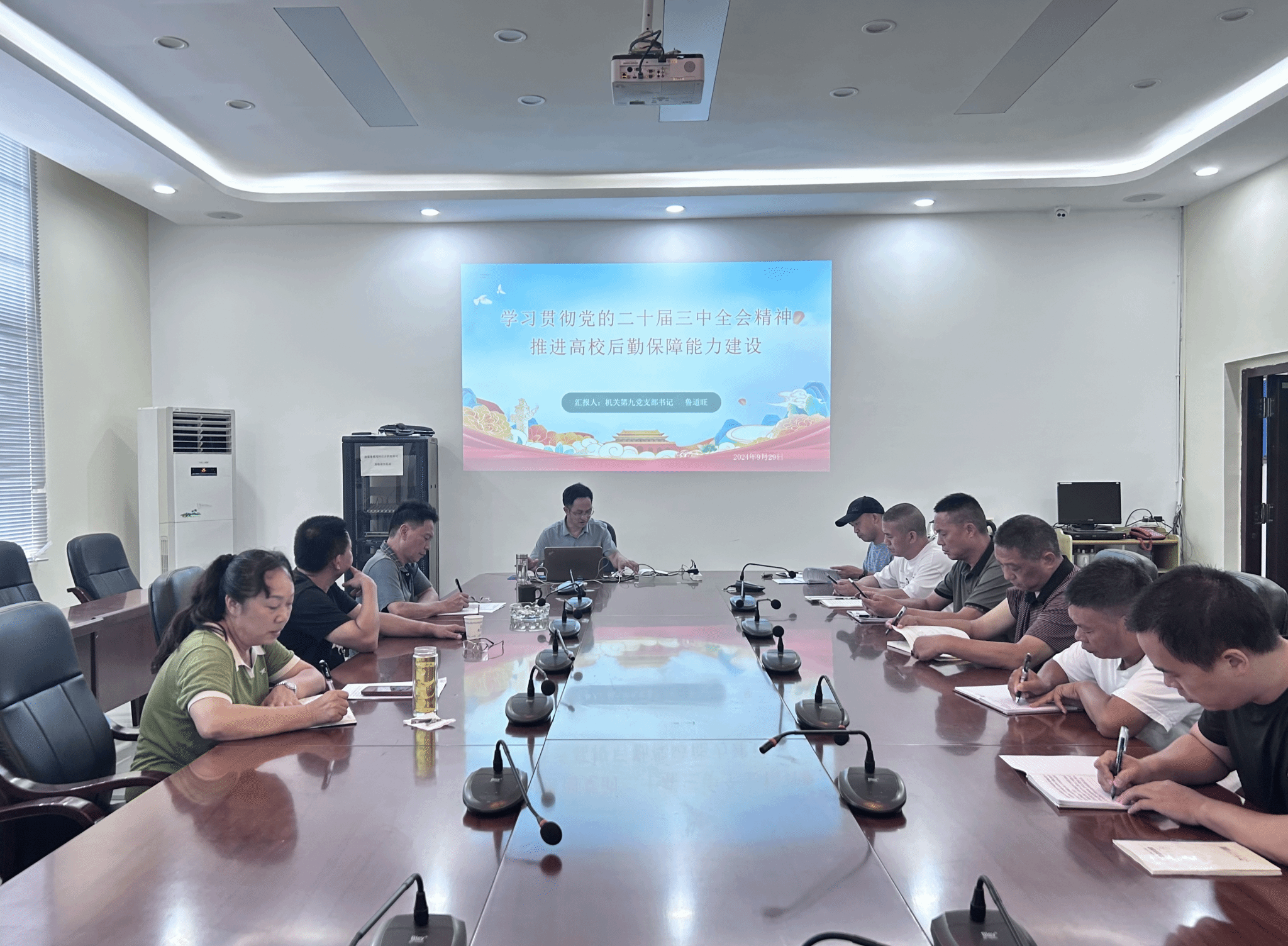 为深入学习贯彻党的二十届三中全会精神,把党中央全面深化改革的重大决策部署转化为推动学校高质量发展的强大力量。2024年9月29日,bv伟德国际1946机关第九党支部书记鲁道旺以《学习贯彻党的二十届三中全会精神 推进高校后勤保障能力建设》为题,为支部全体党员讲授学习贯彻党的二十届三中全会精神专题党课。